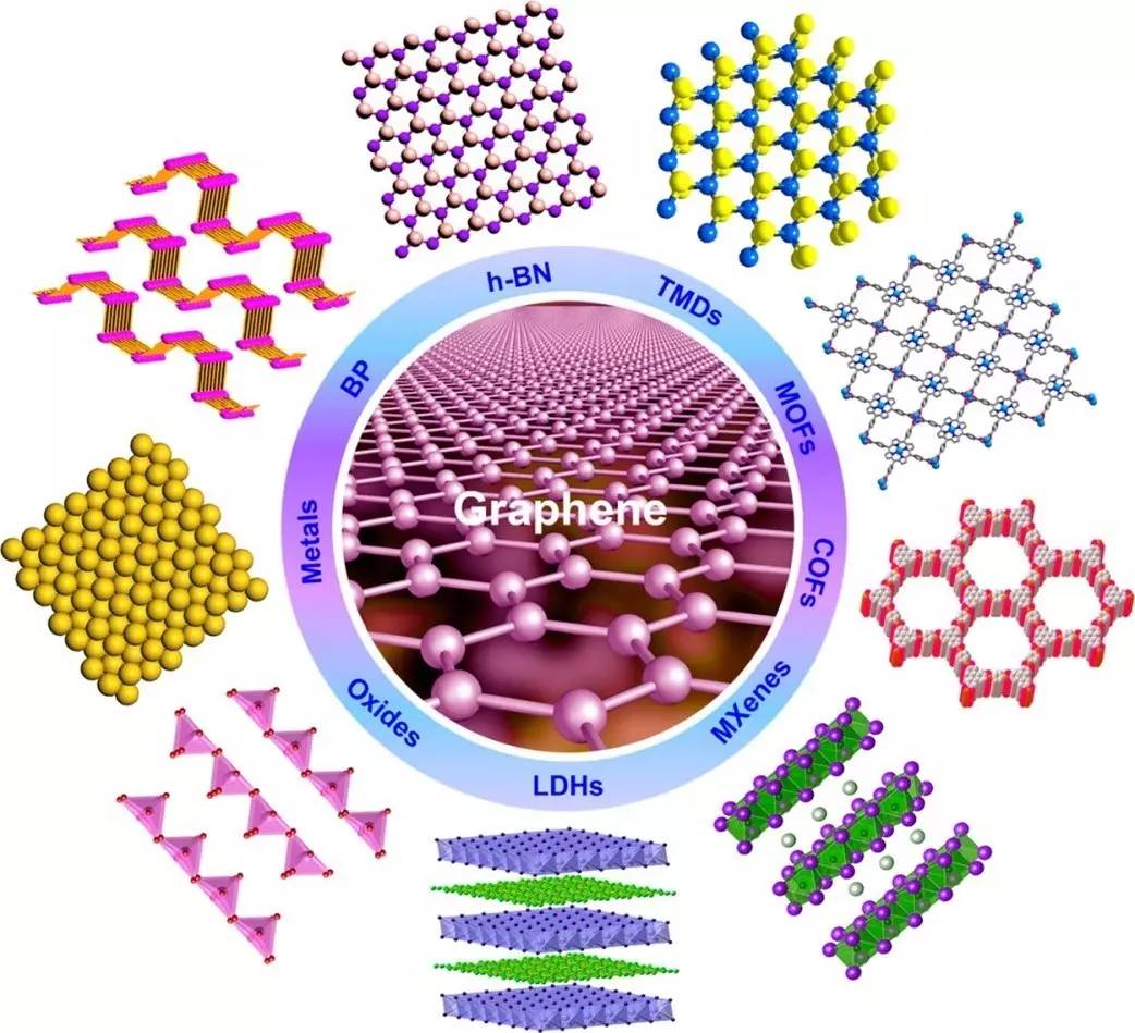 ? ? ? ?根據國家標準的定義,由一層或幾層構成,其中每一層內的原子與所在層內的鄰近原子緊密成鍵結合,有一個(gè)維度(即其厚度)處于納米或更小尺度,其余兩個(gè)維度通常處于更大尺度的材料,稱(chēng)為二維材料。