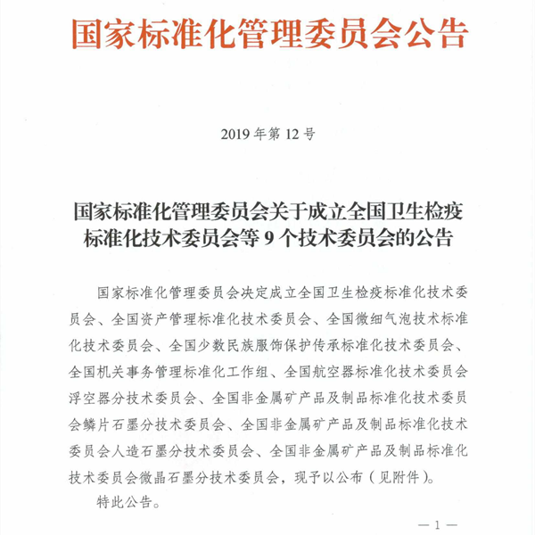 2019年11月11日,國家標準管理委員會(huì )發(fā)布2019年第12號公告,決定成立全國微細氣泡技術(shù)標準化技術(shù)委員會(huì )。